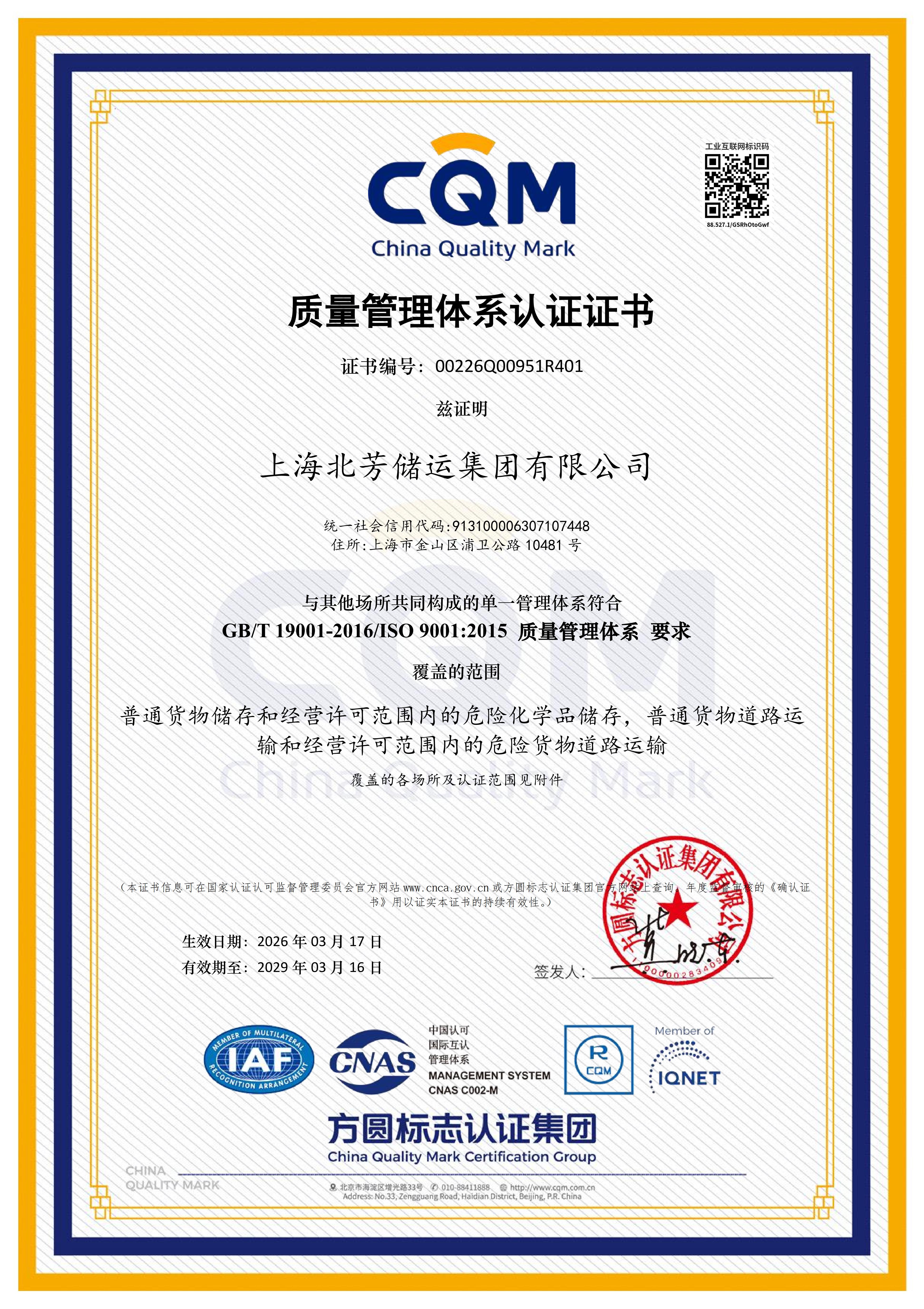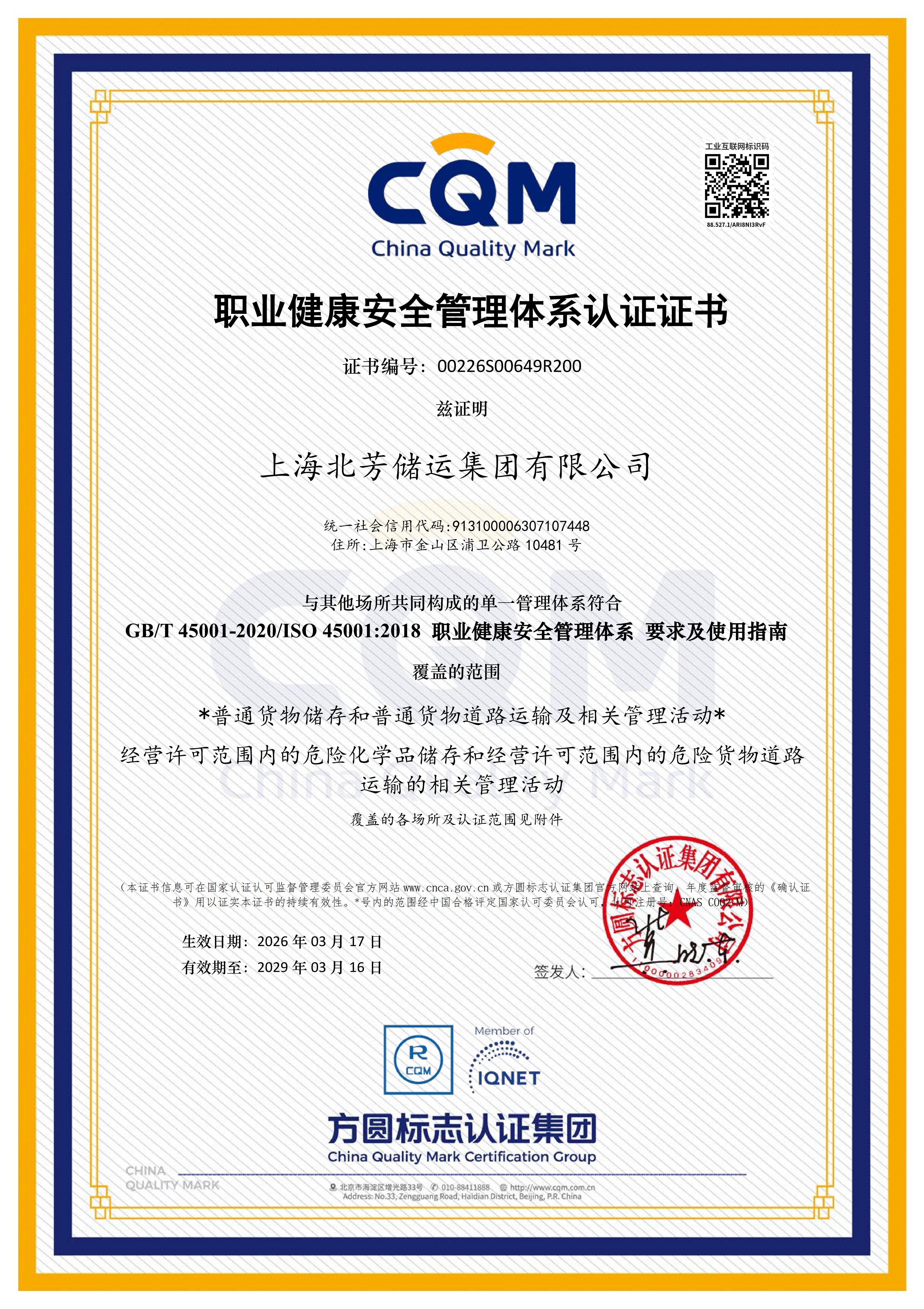 QEHS目标:为客户提供安全、快捷、高效、优质的物流服务,全力实践北芳的使命与愿景。
